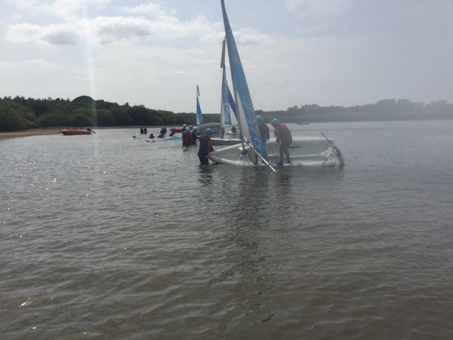 The weather started fine and stayed lovely all day. We breakfasted on beans and bacon, with hash browns on the side. Wednesday was for canoing and sailing, with the groups switching round to take their turn.