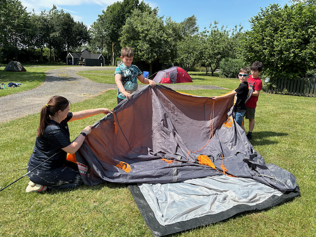 For some, it was their first night in a tent. Perhaps, it wasn’t the easiest thing to get to sleep, but most managed to get some rest. What goes up must come down. So the first job of the morning was to pack up the camping kit and take down the tents.